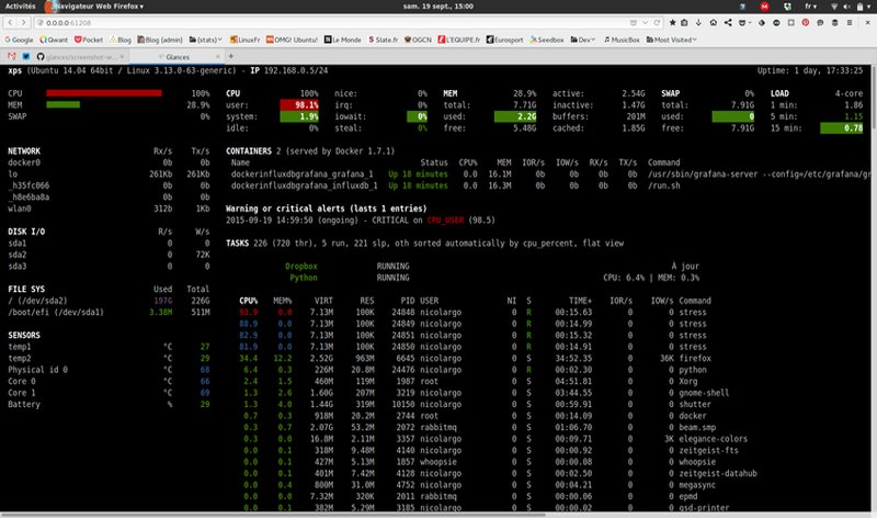 - 用Python编写的Glances几乎可以在任何平台上运行:GNU/Linux,FreeBSD,OS X和Windows。