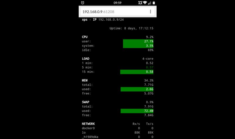 - CPU(中央处理器、内存、负载、进程列表、网络接口、磁盘I/O、中断请求(IRQ)/RAID、传感器、文件系统(和文件夹)、Docker、监控、警报、系统信息、正常运行时间、快速查看(CPU、内存、负载)