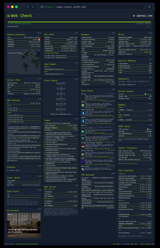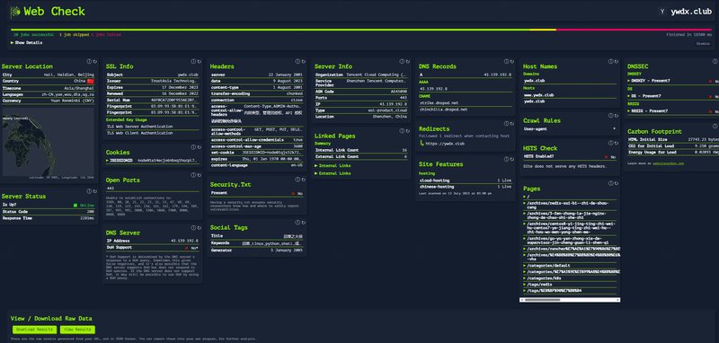 通常,当您查看网站时,您最初总是会检查几件事。思考:Whois,SSL链,DNS记录,技术堆栈,安全协议,抓取规则,站点地图,重定向,基本性能,开放端口,服务器信息等。通过一系列基本的 curl 命令或在线工具的组合,这些都不难找到。但是,在一个地方清晰可见地呈现所有内容要容易得多