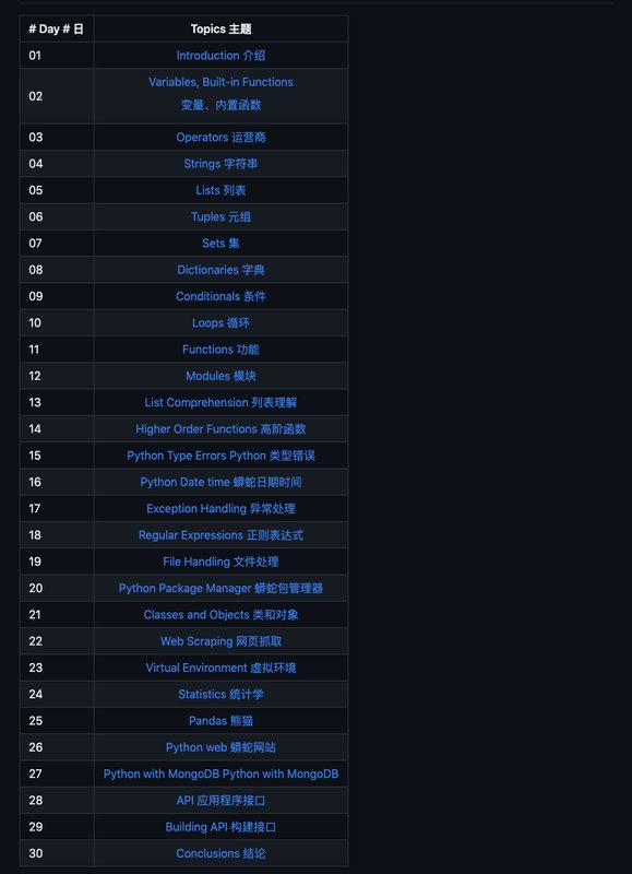 25.9k star,推荐一部开源的30天学习python方案,入门python的注意了
