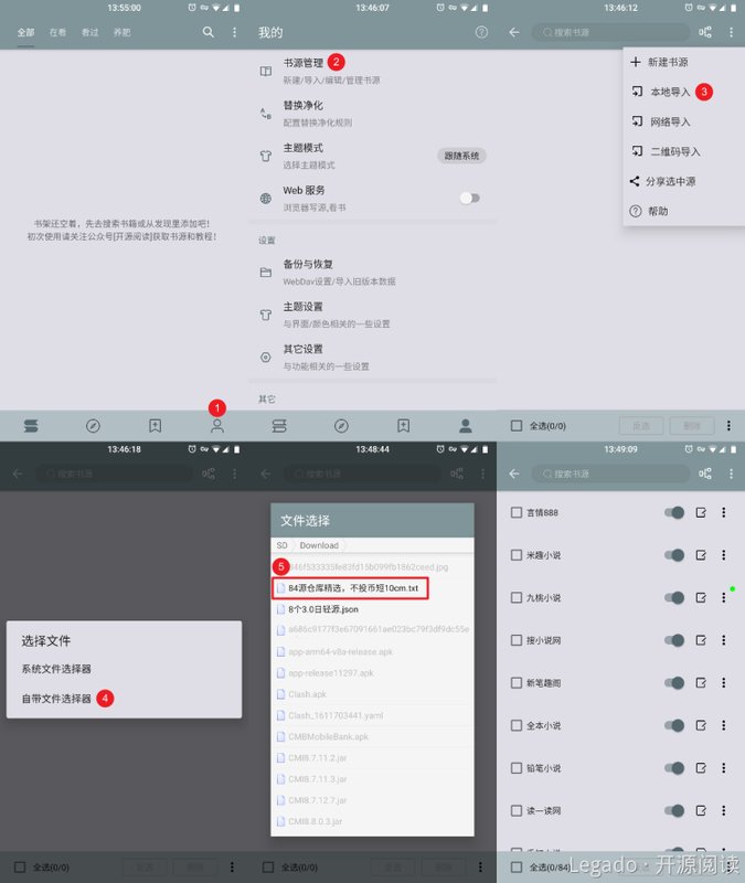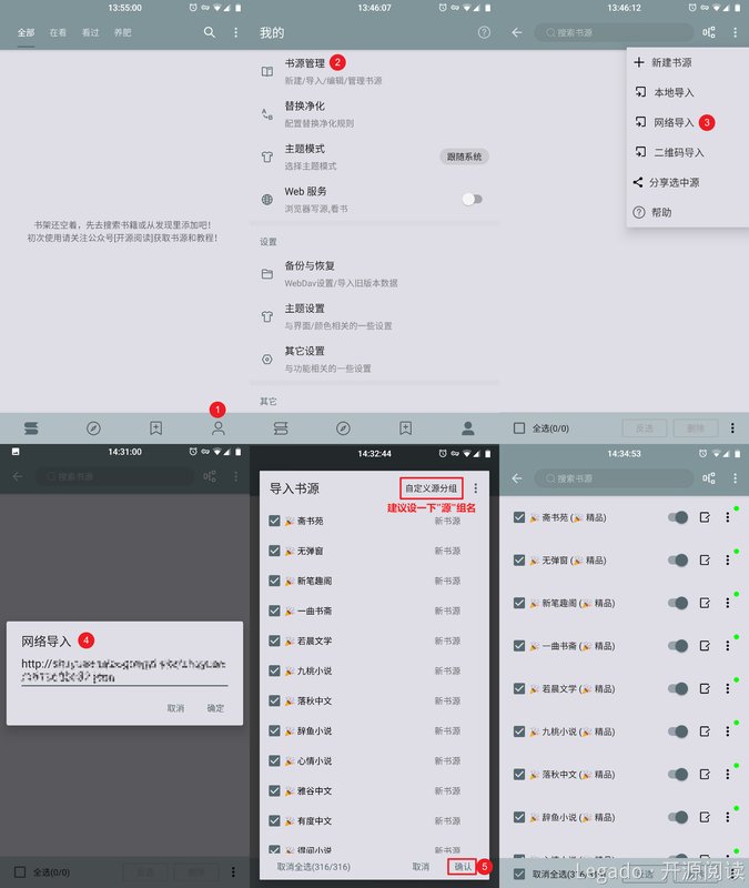 支持本地读入书源,支持从网络导入书源(通过复制网址完成)