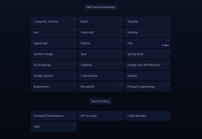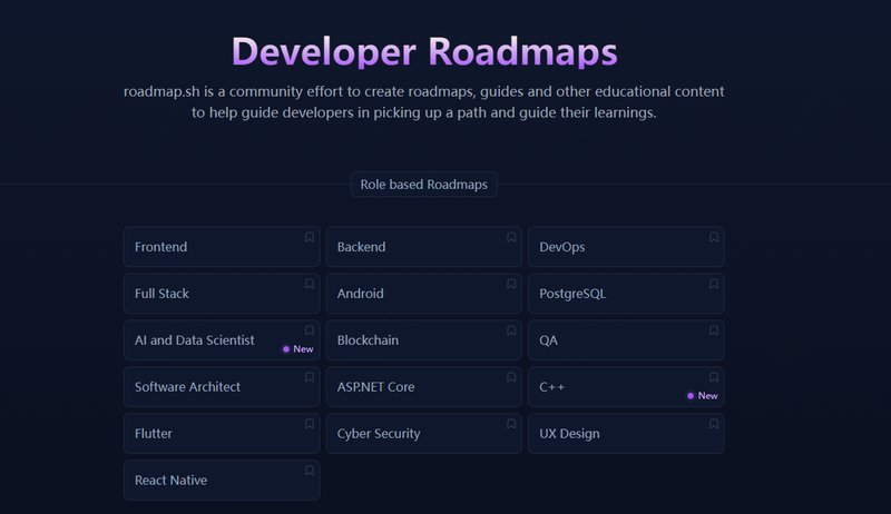 ”developer-roadmap” 项目提供了多个学习路线,以下是一些可供选择的路线图:
