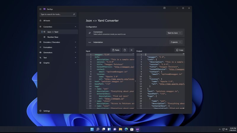 例如,start devtoys:?tool=jsonyaml将打开DevToys并启动Json <> Yaml工具。