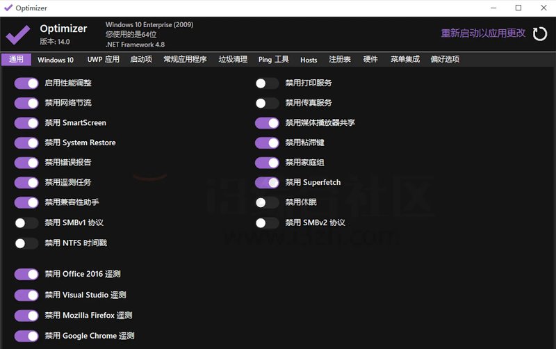 关闭Windows遥测、Cortana等: Optimizer 帮助用户关闭了一些可能会收集个人信息的Windows功能,增强了用户的隐私保护。