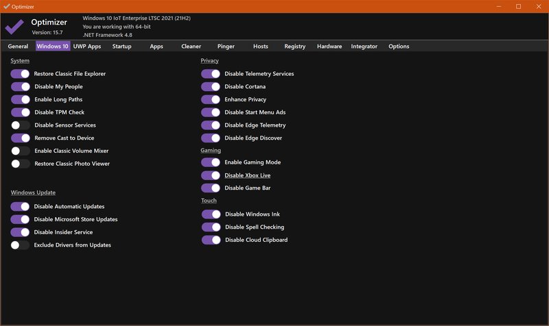 Optimizer 可以帮助用户在Windows系统上应用特定的系统调整,增强隐私和安全保护。它的使用非常灵活,可以根据用户的需求进行个性化配置,确保用户在使用计算机时能够享受到最高水平的隐私和安全保护。
