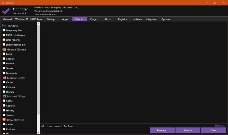 清理系统驱动器和浏览器配置文件: Optimizer 帮助用户清理系统驱动器和浏览器配置文件,释放宝贵的磁盘空间,确保系统的速度和稳定性。