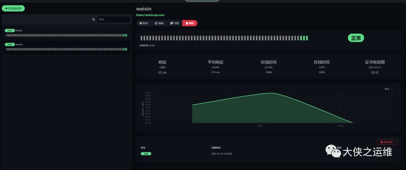 Uptime Kuma是一个开源的、自托管的、基于Web的可用性监控工具,用于监控网站、服务、端口等各种对象的可用性和性能,并提供实时的仪表盘和告警功能。