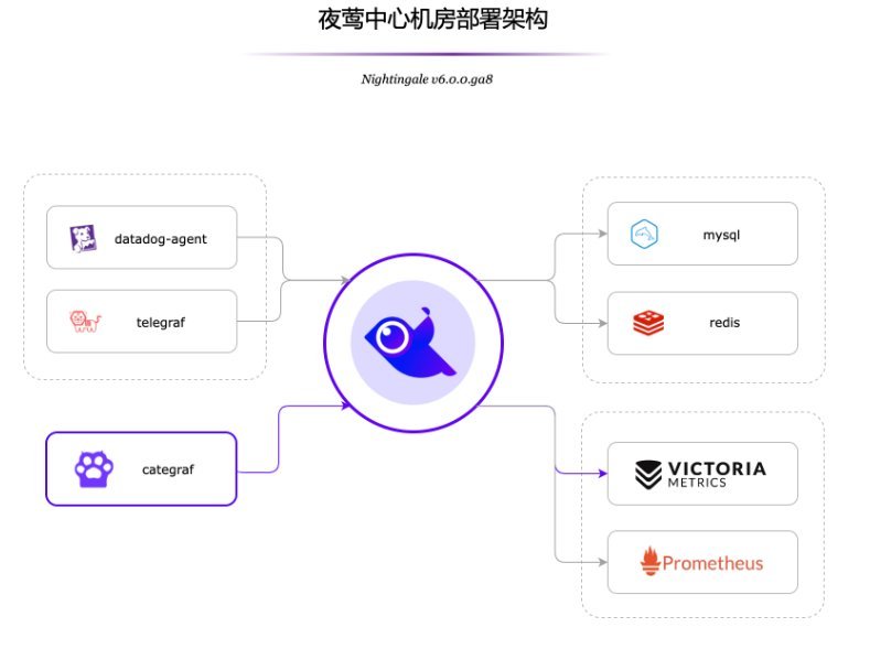 夜莺监控系统支持 Prometheus、VictoriaMetrics、M3DB 等多种时序库,支持 Categraf、Telegraf、Datadog-Agent、Grafana-Agent 等多种采集器,支持 Grafana 看图,与云原生生态无缝集成。