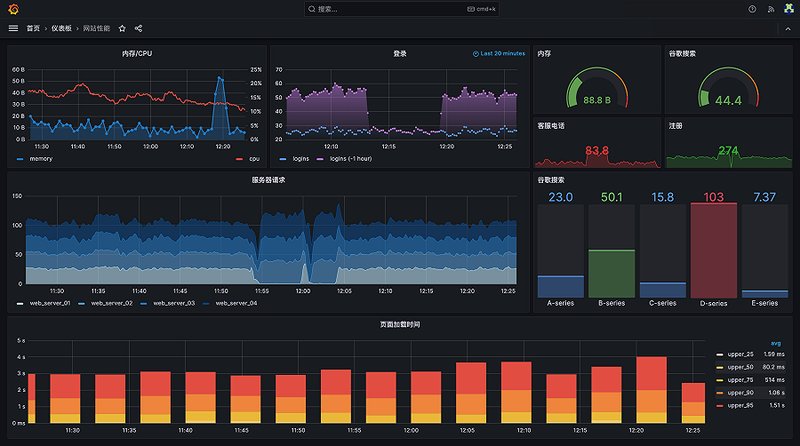 Grafana是一个开源的分析和可视化平台,用于创建和管理仪表盘、报表和告警。Grafana可以与Elasticsearch、Prometheus、Loki等多种数据源集成,并提供丰富的图形和图表类型,如热力图、时序图、饼图等。