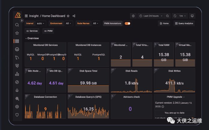 PMM是一个开源的数据库监控和管理平台,基于Prometheus和Grafana构建。PMM可以监控MySQL、PostgreSQL、MongoDB等多种数据库的性能、可用性和资源利用情况,并提供查询分析、备份管理、安全审计等功能。