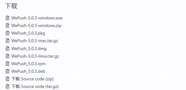 WePush 是开源的,支持 Windows、Linux 和 macOS 三个平台。WePush 是一款值得尝试和使用的消息推送工具。