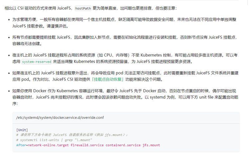 接入k8s有两种方式,可以直接使用CSI驱动,也可以直接使用hostPath 方式挂载 JuiceFS。
