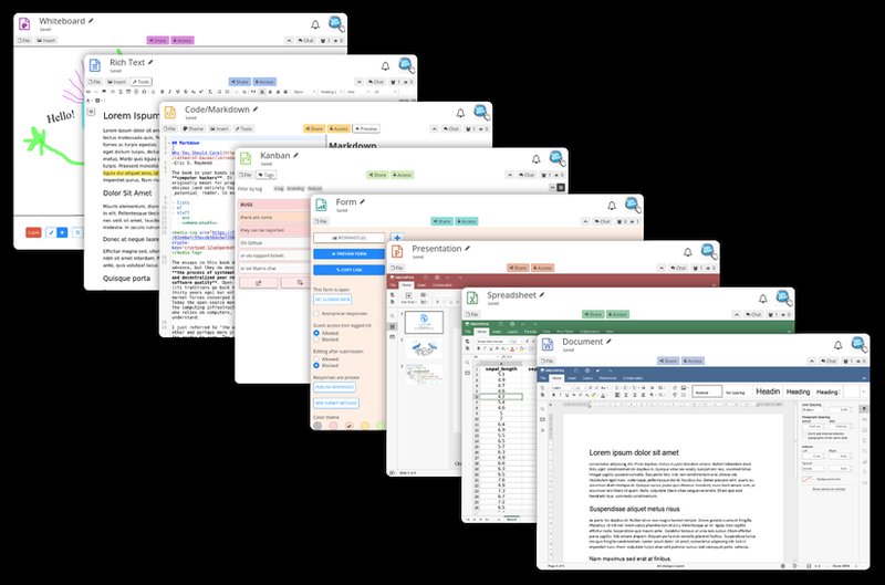 - 全套应用程序:CryptPad提供了一个完整的办公套件,包括富文本、电子表格、代码/Markdown、看板、幻灯片、白板和表单等工具。