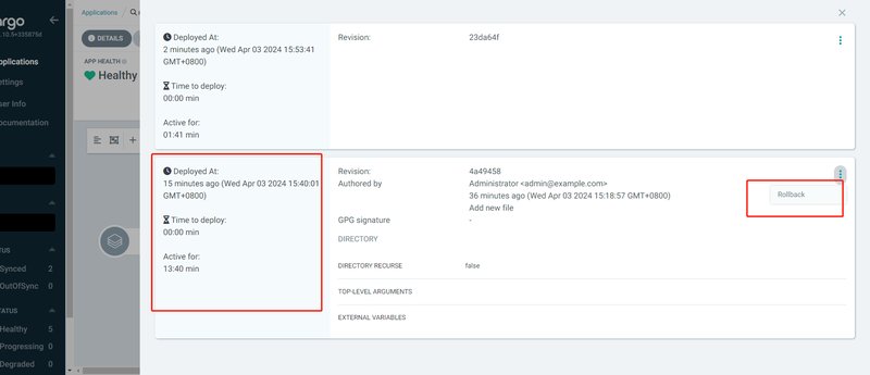 - 回滚功能:支持回滚到Git仓库中任何提交的应用程序配置。