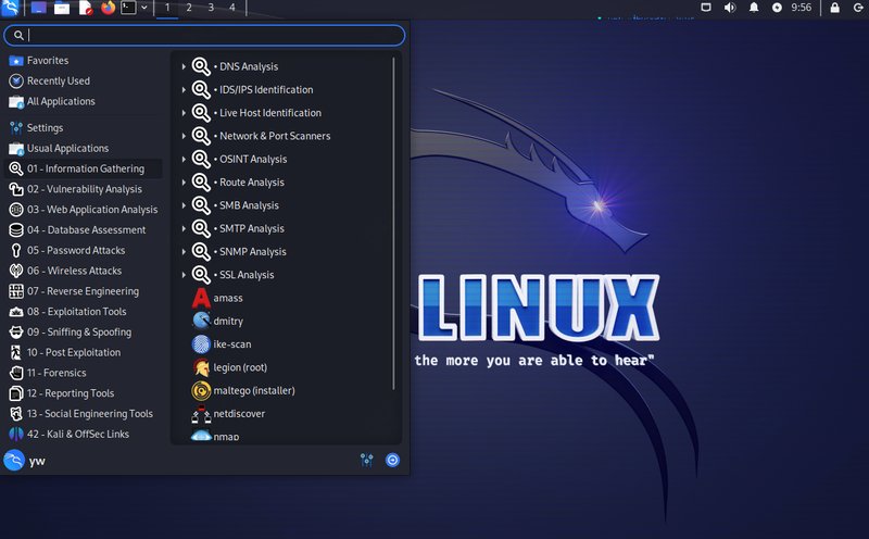 直到今天,Kali Linux已经发展成为网络安全领域最流行和强大的Linux发行版之一。它拥有超过600种预装的安全工具,覆盖了漏洞评估、逆向工程等方面的需求。每年都会发布新的版本,不断优化和增强功能。