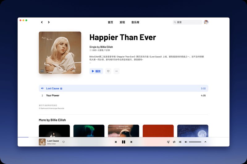 - Touch Bar 支持:macOS 用户可以通过 Touch Bar 快速控制音乐播放。